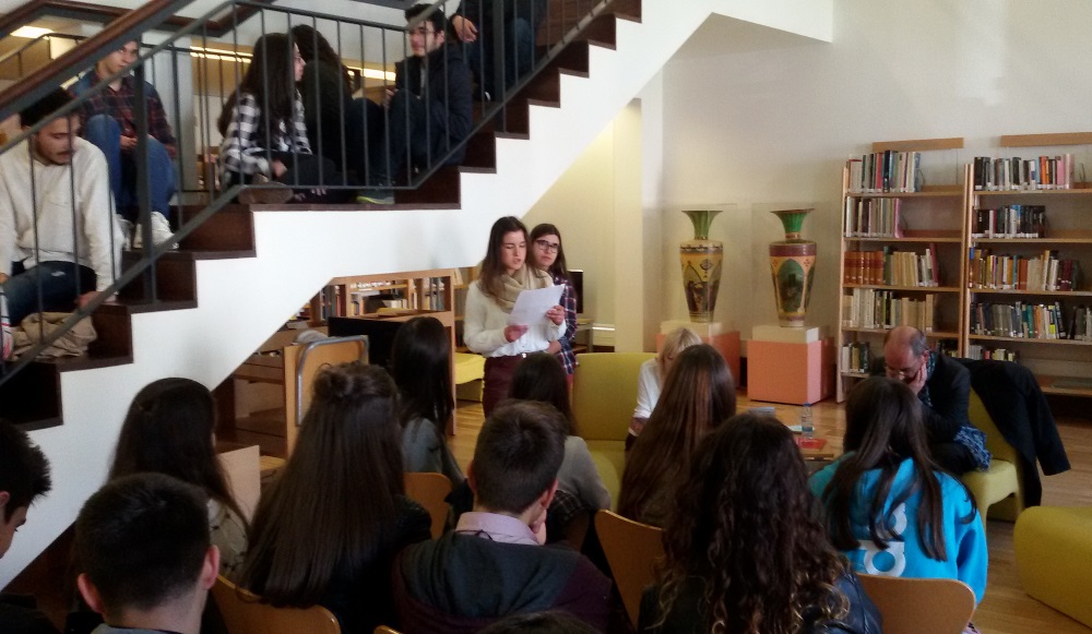 Breve mas prazenteiro momento de convívio com um escritor, que com os jovens partilhou não apenas a importância da leitura como a aventura que é a artesania da escrita.