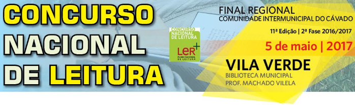 Com particular interesse para os alunos selecionados na 1.ª Fase da 11.ª Ed. doConcurso Nacional de Leitura (2017), pertencentes a escolas da região abrangida pela Comunidade Intermunicipal do Cávado (concelhos de Amares, Barcelos, Braga, Esposende, Terras de Bouro e Vila Verde), que prestarão provas na 2.ª fase do concurso, já foi dado a saber o local e a data de realização desta fase regional do CNL.