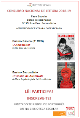 A prova de conhecimento sobre cada uma das obras selecionadas para esta 1.ª fase será realizada nos princípios de dezembro. Entre aprendizagens, vivências e leituras, lá nos encontraremos para a seleção de dois leitores (por cada ciclo) que nos representarão na fase municipal do concurso e, quem sabe, nas que se lhe seguem, até à finalíssima.