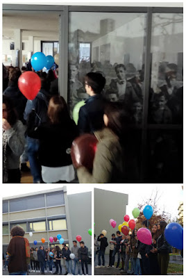 Mas também a poesia dita (e bem dita), para além dos balões que subiram ao céu, teve o seu momento, com a leitura (pelo aluno Pedro Dias) do poema Carta a meus filhos sobre os fuzilamentos de Goya (de Jorge de Sena).