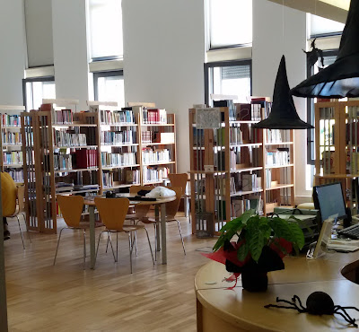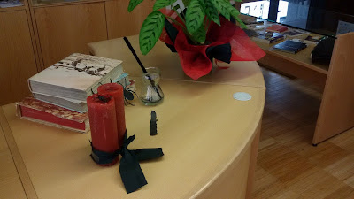 Já se nota o espírito de Halloween. E logo, logo à entrada da biblioteca, no escaparate das sugestões de leitura, pontuam alguns clássicos (mas não só) da literatura fantástica e de terror: Mary Shelley e o seu Frankenstein, com certeza; Washington Irving e uma certa Lenda do Cavaleiro sem Cabeça (extraordinário); Edgar A. Poe, aterrorizando-nos com os Crimes da Rua da Morgue e outras histórias; H. P. Lovecraft para não te deixar "pregar olho"; também Jorge Luís Borges, numa das suas incursões no domínio da literatura fantástica; ainda Neil Gaiman, Paul Jennings, ou David Almond a perguntar: Que monstros fabricamos? ... entre outros autores, sem esquecer um livro mais recente de um tal Magnus Myst, cujo título nada é menos do que maléfico...