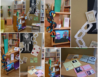 Elos de Leitura - o mote a nível nacional para a Semana da Leitura 2016, suscitou a criatividade e o labor de alunos do 8.º ano da ESAF, na disciplina de Educação Tecnológica, que, sob orientação da professora Albertina Coutinho, deram largas à imaginação em torno dos laços que os livros tecem. Eis uma amostra do que por aqui, que é como quem diz sala de leitura da biblioteca da ESAF, se pode ver.