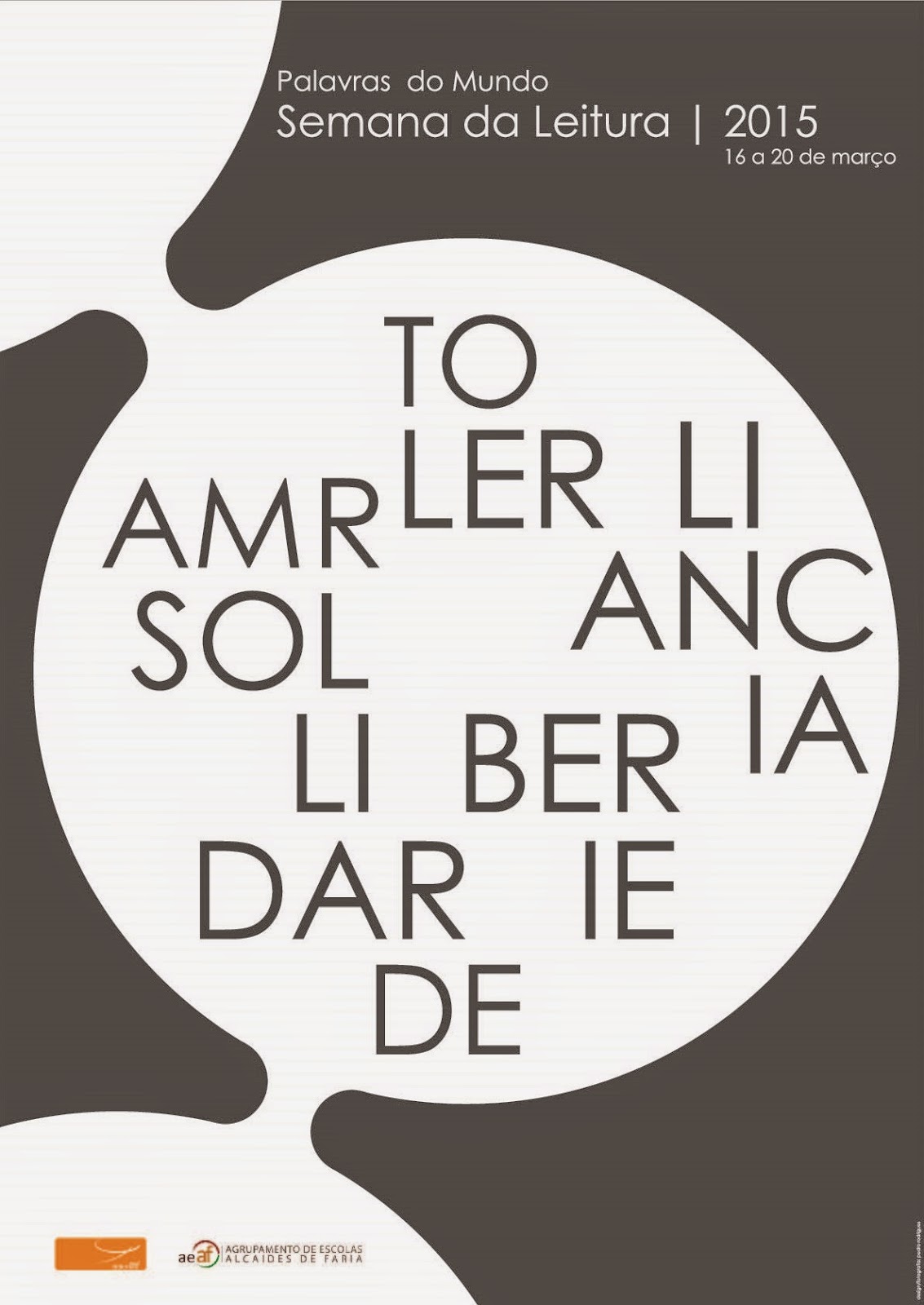 Sob o lema Palavras do Mundo, iniciou-se hoje a Semana Nacional da Leitura. Uma semana dedicada muito especialmente à promoção do gosto pela leitura junto dos jovens. Por cá iniciámo-la, logo pela manhã, com uma sessão de contos, Contos do Mundo, da qual faremos eco em próximo post. Por agora, o nosso cartaz, um trabalho criativo que jogando com palavras do mundo, quiçá as fundamentais, incita a nossa curiosidade no encalço do seu desvelamento.