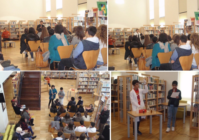 Ao longo do dia, foram chegando trabalhos muito criativos sobre diversos temas científicos, da biologia à geologia, elaborados por alunos, e entretanto expostos na sala de leitura da biblioteca. Também a exposição de equipamento científico tem sido motivo de acentuado interesse por parte dos alunos que, por moto próprio ou em grupo turma, não perdem a oportunidade de observar, tocar, experimentar...