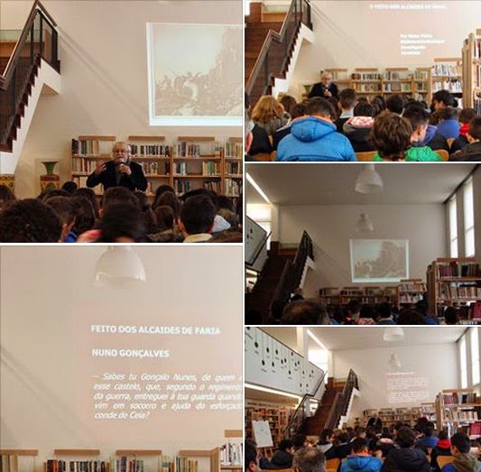 Assim aconteceu... na manhã de quarta-feira, dia 11.fev., foi tempo de revisitação histórica ao feito dos Alcaides de Faria (Nuno Gonçalves e Gonçalo Nunes); Alcaides de Faria que dão nome ao nosso Agrupamento de escolas e remetem para uma evento lendário da nossa região - a defesa do castelo de Faria. Nessa viagem ao tempo do Rei D. Fernando de Portugal e das guerras com Castela, tivemos como guia de percurso o bibliotecário municipal, Victor Pinho, também ele historiador e investigador da história local. Sessão animada e de sensibilização histórica, lembrando aos mais novos que a identidade de uma escola também passa pela assunção plena dos seus símbolos.
